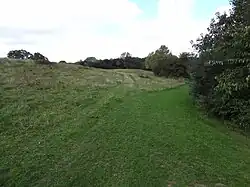 The south-eastern part is a large grassed area with football pitches, a children's playground and a small pond. North-west is a hilly area managed for nature conservation with a wildflower meadow and woods.[5]