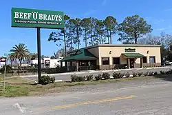 Beef O'Brady's (styled as Beef 'O' Brady's Family Sports Restaurant)[3] is an American restaurant franchise, established in 1985 by Jim Mellody in Brandon, Florida,[4] and headquartered in Tampa.[5]