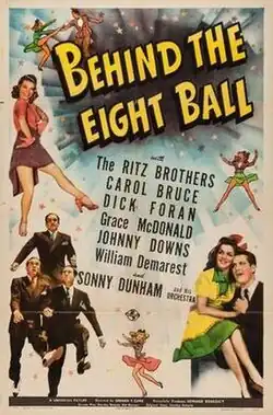 Behind the Eight Ball is a 1942 American comedy film directed by Edward F. Cline and written by Stanley Roberts and Mel Ronson. The film stars Al Ritz, Jimmy Ritz, Harry Ritz, Carol Bruce, Dick Foran, Grace McDonald, Johnny Downs and William Demarest. The film was released on December 4, 1942, by Universal Pictures.[1][2][3]