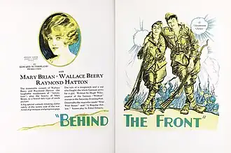 - ^ "New Pictures: Behind the Front", Exhibitors Herald, 23 (12), Chicago, Illinois: Exhibitors Herald Company: 67, December 12, 1925, retrieved December 1, 2022