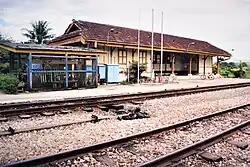 The Behrang railway station is a Malaysian train station located approximately 500m to the Southeast of the town of Behrang Stesen in Perak. The station demolished and rebuilt for the Rawang-Ipoh Electrified Double Tracking Project in 2008. At present, the station is not in used as the KTM ETS, which services the line, does not stop here.[1][2][3][4]