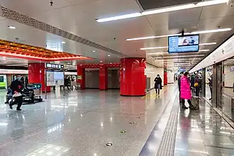 Beijingnan Zhan (Beijing South railway station)[11] is a subway station on Line 4 and Line 14 of the Beijing Subway in China.[12] It is located under the building of Beijing South railway station. The station opened on 28 September 2009, when the whole Line 4 was put in operation.[13] The station on average has 135,000 entrances and exits per day.[14]