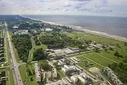 A privately owned airstrip at Anduki is mostly used for flights to BSP facilities located offshore.[38] Travelers must go to the Miri Airport or the Brunei International Airport for commercial flights.[39] Panaga Health Centre, BSP Headquarters, and Suri Seri Begawan Hospital all have helipads.[40] Furthermore, military helicopter operations are supported by a heliport at the Medicina Lines' British Army Jungle Warfare Training School,[41] which is run by No. 230 Squadron RAF.[42]