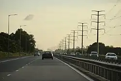 The Rasau Bridge connects the district to Sungai Tujoh and Miri in Sarawak, Malaysia to the west, while the Seria/Lumut bypass connects it to the Muara–Tutong Highway to the east. By coastal highways, it takes over an hour to get from Bandar Seri Begawan to Belait District.[28] As of 2022, the district's road network consisted of 923.16 kilometres (573.63 mi), out of which 90.8% were paved.[29]