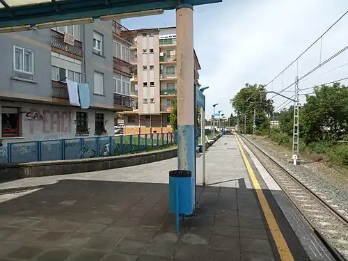 Belaskoenea is a railway station in Irun, Basque Country, Spain. It is owned by Euskal Trenbide Sarea and operated by Euskotren. It lies on the San Sebastián-Hendaye railway, popularly known as the Topo line.