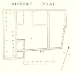 - ^ a b Lieut. H.H. Kitchener [1850-1916], "Lieutenant Kitchener's Reports: IV - P.E.F. Camp, Taiyebeh, 30th May, 1877," Palestine Exploration Fund Quarterly Statement 9.4 (Oct. 1877): 166: "The entrance was probably in the centre of the eastern side, where two columns are squared on the outside--it was probably double, with a round column between. The end columns at both ends of the colonnade were squared on the outside, forming a double column on the inside, exactly the same as in Jewish synagogues, such as at Kefr Ber'am, where the southern columns of the portico were two double columns corresponding with those at the north end of the building. Another point of resemblance is the direction of the colonnade, being within twelve degrees of north and south."