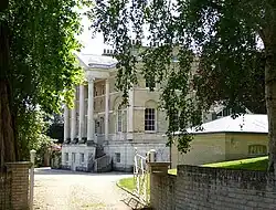 Belfield House was built around 1775-80 for Isaac Buxton and his wife. It was designed by John Crunden.[2] Buxton's grandchild was the MP and social reformer Thomas Fowell Buxton, who spent time at Belfield House during his childhood. He later became the MP for Weymouth and Melcombe Regis in 1818,[4] and the owner of Belfield House.[5] During the early 19th century, the drawing room and south-east front were reconstructed, as was the conservatory in the late 19th century.[2]