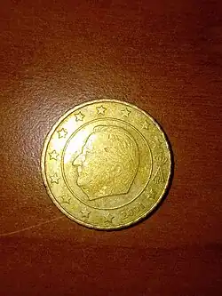 - ^ Premières pièces de monnaie à l'effigie du Roi sur le site officiel de la Monarchie belge Archived June 5, 2014, at the Wayback Machine
