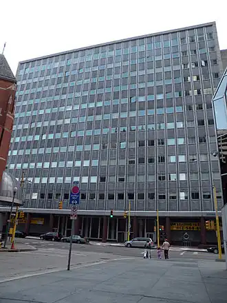 The Bell Telephone Company of Pennsylvania Western Headquarters Building (also known as the Verizon Building) is a structure at 201 Stanwix Street in downtown Pittsburgh, Pennsylvania. The 12-story building, which was built between 1956 and 1957. In 1985 it was utilized for office space, corporate television & fiber optic teleconferencing facilities for intra-organization, face-to-face meetings. An historic #5ESS cutover in 1986 was covered by the news crew here marking the entrance into the digital age of telecommunications for an antiquated landline infrastructure in the United States. Converted to luxury rental apartments in 2012.[2] It was listed on the National Register of Historic Places on December 15, 2011.[1]