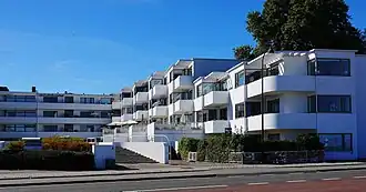 The Bellavista housing estate designed by Arne Jacobsen is the clearest example of Bauhaus architecture in Denmark.[1] Completed in 1934, the estate is located just north of Copenhagen, in Klampenborg, Gentofte Municipality, next to Jacobsen's Bellevue Beach, which had been completed a couple of years earlier.[1]