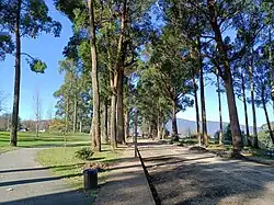 The park's central avenue in 2023, with its exotic eucalyptus trees.
