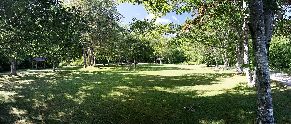 Ben Eoin Provincial Park [2] is a small secluded provincial park on an old farm against hardwood-covered hills in the community of Ben Eoin, Nova Scotia, Canada, on the south side of the East Bay of the Bras d'Or Lake, on Cape Breton Island. This picnic and hiking park is managed by the provincial Department of Natural Resources and is situated on a heavily wooded 225 acres (91 ha) parcel of Crown land. A short distance into the park there are several large neatly mown clearings (former farm fields) with picnic tables under the trees at the edge of the small fields. Pit toilets and disposal areas for hot coals are available onsite.