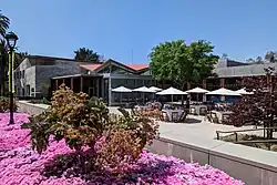 The museum is located near the southwestern edge of Pomona's campus, adjacent to the Village, Claremont's downtown commercial district.[26] It was designed collaboratively by Boston-based Machado and Silvetti Associates and California-based Gensler, and cost $44 million to build.[26] The building is U-shaped around a courtyard,[26] and is constructed primarily of cast-in-place concrete, with stained heavy timbers as an ornamental accent.[31] It features several visual axes, and is designed to be "visually porous" so that visitors can easily see both into and out of it.[31] It was designed to a LEED Gold standard.[32]