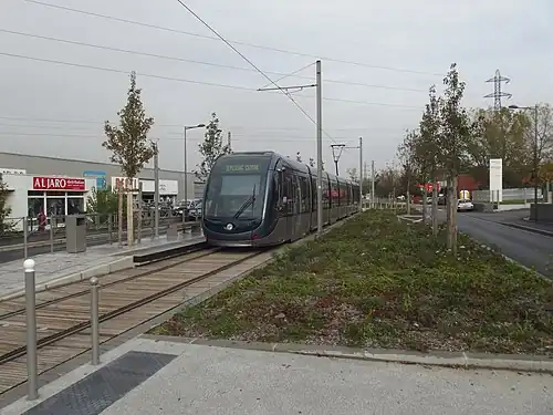 Berges de la Garonne tram stop is located on line B of the Tramway de Bordeaux. It opened on 20 June 2014, when the line was extended from Claveau, and is the current northern terminus of line B. The stop is located on Avenue du Docteur Schinazi in the city of Bordeaux and is operated by Transports Bordeaux Métropole.[1][2]