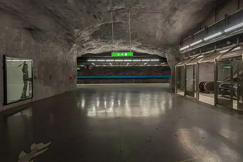Bergshamra metro station is a station on the red line of the Stockholm metro, located in Bergshamra, Solna Municipality. The station was opened on 29 January 1978 as part of the extension from Universitetet to Mörby centrum.[2]