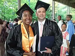 Graduates pose with diplomas following commencement at the Koussevitzky Music Shed in Lenox.