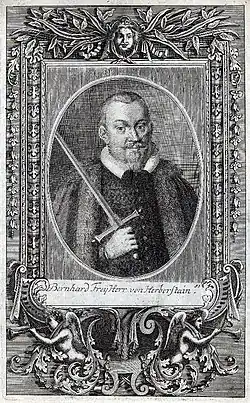 Bernhard II. von Herberstein (1566 - 30 July 1624) was an Austrian nobleman, who was Reichsfreiherr of Neuberg and Gutenhag, Prince of Lankowitz in the Duchy of Carinthia, and Lord of the lordships of Herberstein, Reifenstein and Krems.[1][2][3][4][5]