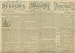 - ^ "Berrow's Worcester Journal – History of the newspaper: Introduction". Worcester News. Newsquest. Retrieved 25 October 2013.