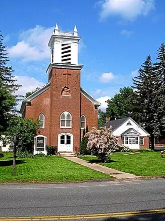 Historic buildings around the green include the Congregational church (1790), the townhouse (1839), the Episcopal Church (1832), two 18th-century taverns now used as residences, a general store built on the site of a former store built in the 19th century, and a former school building.[2]