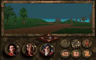 The game runs in 256-color 320x200 VGA mode. The graphics engine uses textured 3D graphics to draw the terrain and uses sprites for most of the detailed objects. The engine does not support multilevel terrain as such, but obstacles such as hills and mountains are supported. Most shops, inns, temples, special locations, and large cities are navigated through pictures usable through hotspots, while smaller towns have 3D buildings.