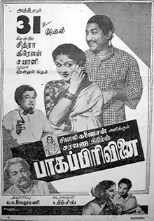 Bhaaga Pirivinai (transl. The Partition) is a 1959 Indian Tamil-language drama film directed by A. Bhimsingh, starring Sivaji Ganesan, M. R. Radha and B. Saroja Devi.[1] The film was released on 31 October 1959.[2] It was remade in Hindi as Khandan (1965), in Telugu as Kalasi Vunte Kaladu Sukham (1961), in Kannada as Muriyada Mane (1964), and in Malayalam as Nirakudam (1977).
