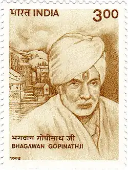 • Indian Postal Service, released a stamp titled Bhagwan Gopinathji on the occasion of his 100th birth anniversary on 3 July 1998 "Stamp titled Bhagwan Gopinathji released". Archived from the original on 21 July 2011. Retrieved 1 June 2011.[54]