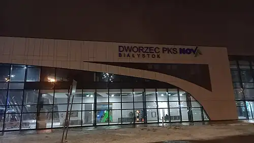 Białystok bus station (Polish: Dworzec autobusowy w Białymstoku) known also as PKS NOVA Bus Station (Polish: Dworzec PKS NOVA) is a bus station in Białystok, capital of Podlaskie Voivodeship in north-east Poland. It has been located in Bohaterow Monte Cassino street since 1986.