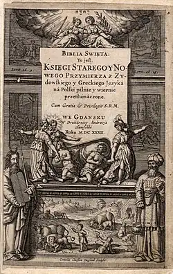 The Brest Bible was superseded by the so-called Gdańsk Bible, which finally became the Bible of all Evangelical Poles.[2] At the synod in Ożarowice, 1600, a new edition of the Bible was proposed and the work was given to the Reformed minister Martin Janicki, who had already translated the Bible from the original texts.[2] In 1603 the printing of this translation was decided upon, after the work had been carefully revised. The work of revision was entrusted to men of the Reformed and Lutheran confessions and members of the Moravian Church (1604), especially to Daniel Mikołajewski (died 1633), superintendent of the Reformed churches in Great Poland, and Jan Turnowski, senior of the Moravian Church in Great Poland (died 1629).[2]