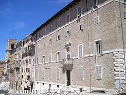 The library was established by bequest of Luciano Benincasa in 1669, whose will states that his private collection is to be made accessible to public use.[1] In 1749, Eleonora Vincenzi gave the library to the municipality of Ancona, and it was moved from the palace of the Benincasa family to the Palace of the Elders.[2] After 1800, the provincial archive was established in Ancona.[3] In 1861, because of French rule over the city, the religious orders were suppressed, and their book collections were transferred to the municipal library; as a result the library collections significantly increased. In 1883 the library was moved to Carlo Rinaldini High SchoolGymnasium. In 1911 the historical archive was merged with that of the municipality, and in 1925 moved again to the former convent of San Francesco delle Scale. During World War II, the convent of San Francesco was destroyed as a result of British bombing (1943/1944), and the historical collections – with their nineteenth-century inventories – suffered serious damage. After the war the city bought the Casa Mengoni-Ferretti, and in 1950 the library was reopened in the new premises.[2] The historical archive, first merged in 1971, was moved from the State archives.