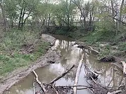 The stream headwaters arise at 40°27′48″N 94°09′22″W / 40.4632400°N 94.1560500°W[1] with the confluence of the East and West forks at an elevation of approximately 302 m (991 ft).[3] The stream flows to the southeast passing one mile west of the community of Washington Center then enters the northeast corner of Gentry County where it passes just south of Siloam Springs. The stream flows to the west for about three miles then turns south-southwest to its confluence with the East Fork of the Grand River just west of the community of Ellenorah[2] at 40°20′15″N 94°20′38″W / 40.3374945°N 94.3438460°W[1] and an elevation of 266 m (873 ft).[4]