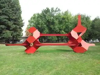 Bruce Beasley's Big Red is an outdoor sculpture installed at Washington Jefferson Park, located at West 7th Avenue between Washington and Jefferson, in Eugene.[1][2] The red painted, abstract steel sculpture measures 12 feet (3.7 m), 9 inches (23 cm) x 11 feet (3.4 m), 6 inches (15 cm) x 36 feet (11 m), 5 inches (13 cm).[1]