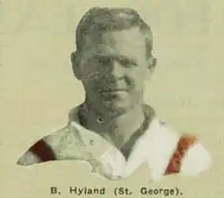 Hyland came to St. George from Mudgee, New South Wales in 1930. He played four seasons with the club between 1930 and 1933, and played in the 1930 Grand Final.[3] He was also known as "Blue" or Charlie.[1]