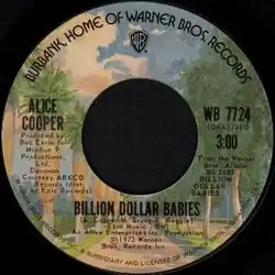 "Billion Dollar Babies" is a song by American rock band Alice Cooper, released in 1973 as the fourth single off their sixth album Billion Dollar Babies. The track is a duet between Alice Cooper and Scottish musician Donovan, who provides the falsetto and high harmony vocals.[3]