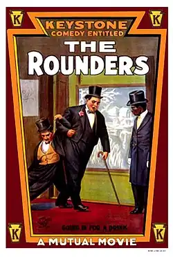 Poster for The Rounders (1914) with Gilbert as doorman in blackface