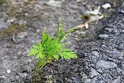 Sweet Wormwood (Artemisia annua) grows in all continents besides Antarctica.[13] It is the only known source of artemisinin, a drug that has been used to treat fevers due to malaria, exhaustion, or many other causes, since ancient times.[14] Upon further study, scientists have found that Sweet Wormwood inhibits activity of various bacteria, viruses, and parasites and exhibits anti-cancer and anti-inflammatory properties.[14][15][16]