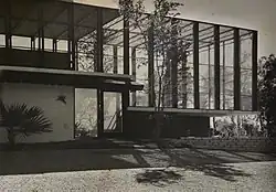 The Heller Residence #2 or Bird-Cage house (a termed coined by a June 1950 Life article of the same name), was a split-level wood and concrete residence surrounded by a diaphanous aluminum screen, constructed in 1949 in Miami, Florida, USA.[1] The building incorporated the use of new materials, including the presence of open-web steel trusses, never seen in residential construction before.[2] The latest and most-popular of a series of homes designed by Igor B. Polevitzky called the Tropotype, these homes were developed between 1936 and 1949.[3] Designed specifically for the South Florida environment, these homes emphasized health, happiness and productivity for the occupant. The Bird-Cage House and other Tropotypes before it, utilized passive-energy designs making them extremely energy-efficient and contained an ambiguous living envelope to encourage what was considered at the time to be a healthy, simultaneous indoor-outdoor lifestyle. Referring to the house during a 1946 lecture at the University of Florida, Polevitzky described them as "...architecture as a volume rather than a mass".