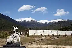 Known as "Monkey Mountain" in Tibetan folklore, it spans 22,594 hectares with a forest coverage rate of 55.91%, featuring distinct vertical vegetation zones ranging from oak and pine forests at lower elevations to fir forests, bamboo groves, and alpine meadows at higher altitudes.[3] The mountain is home to diverse wildlife, including Tibetan antelope, Bengal tigers, and red pandas, documented in the Nyingchi Natural Ecology Museum within the park, which houses 586 species of plant and animal specimens.[4][5]