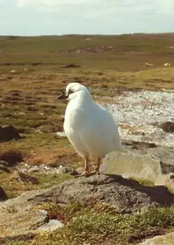 The black-faced sheathbill (Chionis minor), also called the lesser sheathbill or paddy bird, is one of only two species of sheathbills, aberrant shorebirds which are terrestrial (land) scavengers of subantarctic islands.