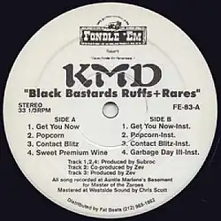 Black Bastards Ruffs + Rares is an EP containing rare and demo tracks by KMD from the album Black Bastards.[1] It was released in 1998 on Fondle 'Em Records, available on 12" vinyl only. The EP contains eight tracks in total, four of which are instrumental.[2]