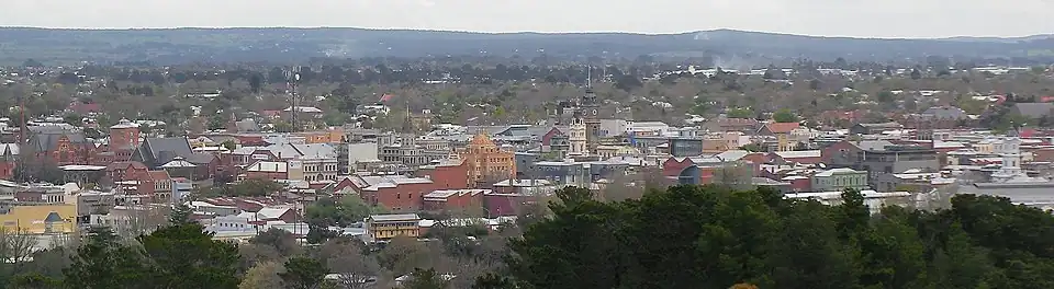 Black Hill is a suburb of Ballarat, Victoria, Australia in the northeast of the city. It is named after the major landmark, Black Hill, on which there was extensive and highly profitable open-cut gold mining from the early 1850s during the Victoria gold rush. The hill was originally known as Bowdun by the Wadawurrung people, but was later renamed Black Hill by surveyor William Urquhart.[2]