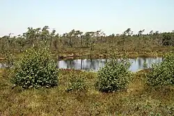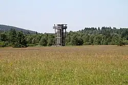 The Black Moor (German: Schwarzes Moor) is an important internationally recognised wetland located in the Bavarian Rhön Mountains at the tripoint of the German states of Hesse, Thuringia and Bavaria. It is part of UNESCO's Rhön Biosphere Reserve and has an area of 66.4 hectares. It is thus the largest bog complex in the Rhön. Much of the moor is a largely undisturbed and intact raised bog. It is part of the Europe-wide conservation system, Natura 2000, and one of the most important raised bogs in Central Europe. The Black Moor lies on the watershed between the Rhine and Weser rivers. In 2007 the Black Moor was included in the List of the 100 most beautiful geotopes in Bavaria.