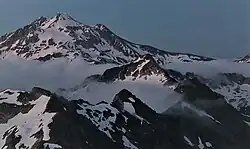 Black Mountain is a 7,262-foot-elevation (2,213-meter) summit located in the North Cascades, in Snohomish County of Washington state.[4] The mountain is situated in the Glacier Peak Wilderness on land managed by Mount Baker-Snoqualmie National Forest. Neighbors include line parent Kololo Peaks, 6 mi (9.7 km) to the east, Painted Mountain two miles west, and Glacier Peak is 5 mi (8.0 km) to the northeast. Precipitation runoff from the peak drains west into tributaries of the North Fork Sauk River, and east into the White Chuck River. Topographic relief is significant as the summit rises 3,460 feet (1,050 meters) above the White Chuck in two miles. The first ascent of the summit was likely made in 1897 by a survey team including A. H. Dubor, Thomas G. Gerdine, and Sam Strom, who named the mountain for the dark color of its rock.[1] The ascent from the north via Lake Byrne is non-technical.[1]