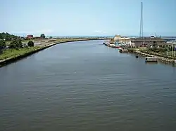 The Black River in the City of Lorain was widened and dredged in preparation for Johnson Steel's arrival in South Lorain.[14] River improvement projects have been managed by the City of Lorain and, since 1964, also the Lorain Port Authority.[15] There are three bridges that span the river in Lorain: Charles Berry Bridge, Lofton Henderson Memorial Bridge, and the Lorain Railroad Lift Bridge.[16][17][18] In 2021, 89,000 tons of material passed through (shipped and received) the Black River.[19]