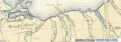 According to the Geographic Names Information System, the Black River was formerly named "Canesadooharie River" and "Riviere en Grys."[10] (These two historical names were actually originally intended to refer to nearby rivers, instead of the Black River.[11])