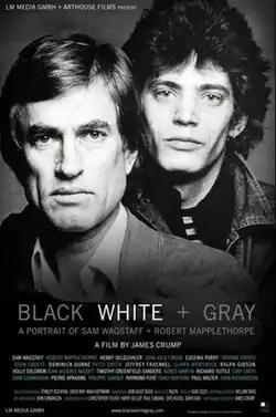 Black White + Gray: A Portrait of Sam Wagstaff and Robert Mapplethorpe is a 2007 American documentary film directed by James Crump.[1] The film chronicles the symbiotic relationship between Sam Wagstaff, an American museum curator and collector of fine art, and Robert Mapplethorpe, the American fine art photographer whose controversial images were at the center of debate about public funding for the arts and the culture wars of the late 1980s.[2][3] The film also explores the relationship both men shared with poet/musician Patti Smith in the New York art world of the 1970s.[4]