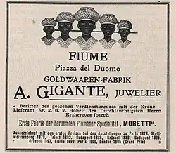 Advertisement for a jewellery store in Fiume (today Rijeka, Croatia) (early 20th century))