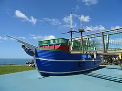 | Pirate Cove | 2012 | Themed area featuring a pirate play ship 'The Flying Raven' and a French frigate 'L' Mistral'. Onboard are water cannons that can be aimed at the opposing ship. The cove also features the Crossbones play area, opened in 2007, with climbing nets, rope bridges and slides. Several themed buildings surround the pirate ships, including 'The Vortex' (see separate description) and a pirate shooting gallery.