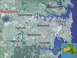 Blacktown is a suburb in New South Wales, Australia, 34 km (21 mi) west of the Sydney central business district. It is one of the most multicultural places within Greater Sydney.[2]