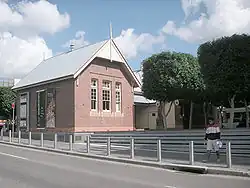 The first school, a single-storey brick building with gables, was opened in 1877. While no longer in use as a school, the building in Flushcombe Road is now used as a Visitor Information Centre. It is the oldest remaining building in the Blacktown CBD and is heritage-listed.[4][16][17]