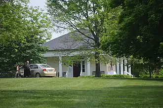 The current historic main house and outbuildings were built by politician and diplomat Andrew Stevenson in 1846. It is a 1+12-story, six-bay, gable-roofed frame building with Gothic Revival and Greek Revival style details. It has an ell at the rear of the west end. The front facade features a pair of one-story tetrastyle porches with pairs of Doric order piers. A notable outbuilding is the square "Athenaeum", a one-story, one-room, frame Greek Revival building with a pyramidal hipped roof and portico supported on Doric piers. Also on the property are a frame kitchen/laundry, a "chapel" or schoolhouse, and two smoke houses. Also on the property are two dwellings, one of which is supposed to have been built to accommodate Justice Roger B. Taney on his visits to Blenheim.[3]